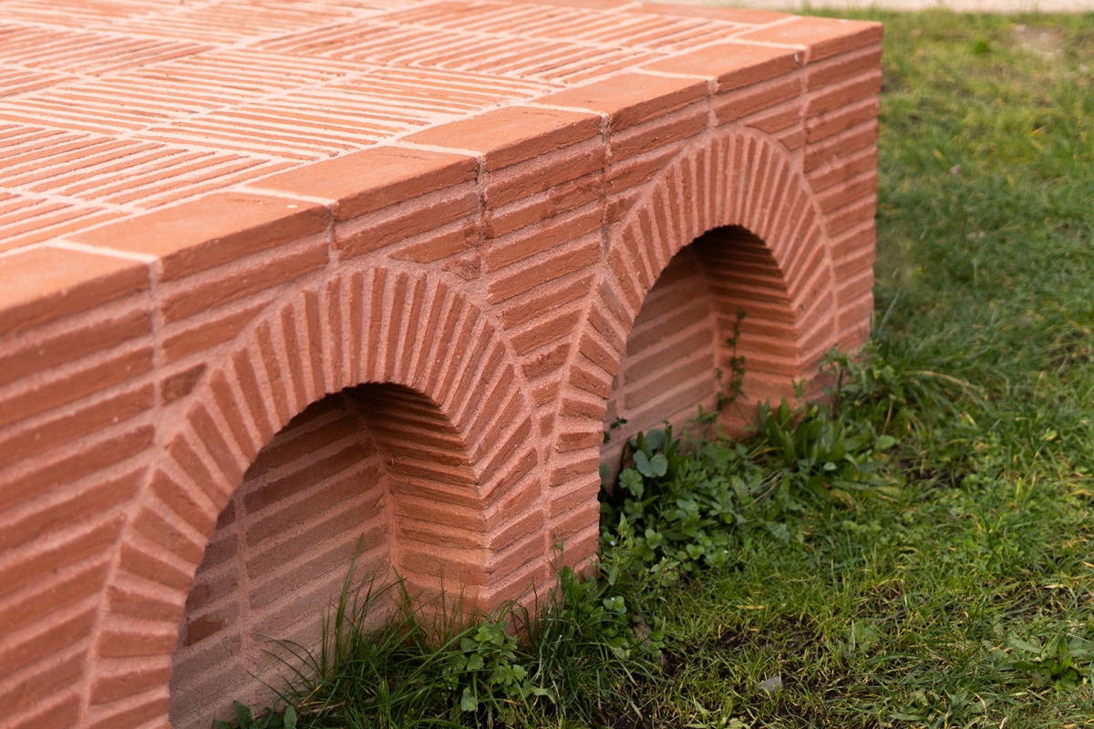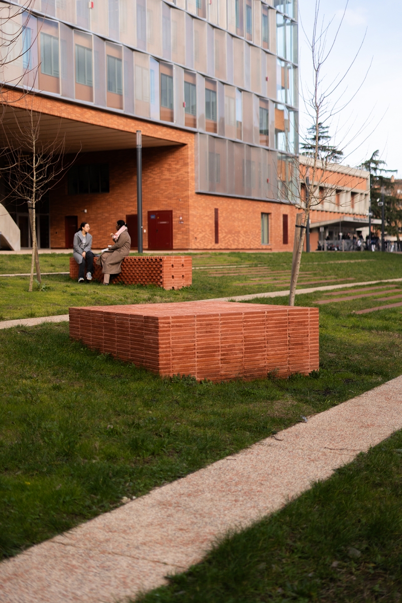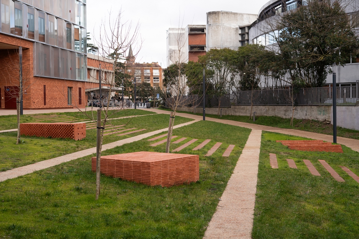 Maçonnerie : Briqueteurs réunis, Toulouse / fourniture briqueterie artisanale : Terres cuites du Savès, Empeaux / cartel : Atelier lupus, Lucie Laflorentie / crédit photo : Victor Charrier